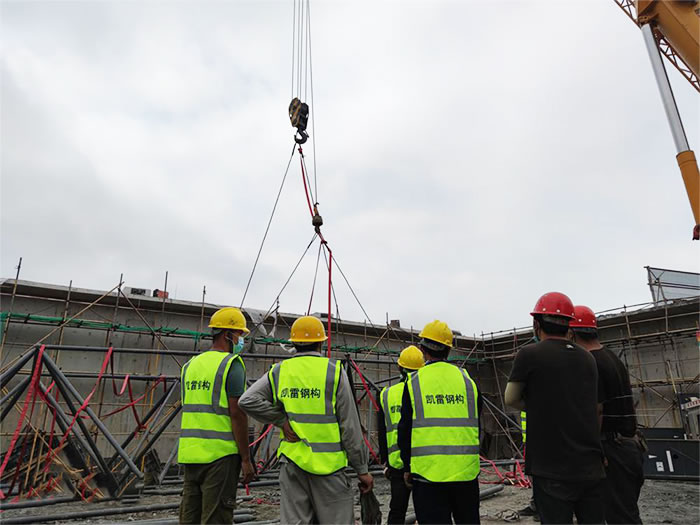 6.为确保.克拉玛依加油站球形网架安装顺利,应有详细的克拉玛依施工组织设计。网架安装必须保证结构的稳定性和不产生的附加变形。